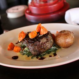 So hubby and I decided to go out at the last minutes and was surprised to find this place crowded in a Monday at 6pm we had a 25 minute wait for a table (I highly suggest making reservations) Food, amazing my steak was cooked perfectly great flavor seasoned perfectly. Crispy Japanese Sweet Potatoes were excellent i could eat them all day. My husband had the prime rib good flavor but over cooked he had the Mac and Cheese which was excellent. Desserts i had the cake and it was excellent hubby had the cheesecake which was excellent. We enjoyed our times here and can see us coming back. This gets crowded so just be mindful of that.