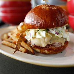 The Arrogant Butcher in Phoenix is nothing short of exceptional. From the moment you step through the door, you are greeted with impeccable service and a welcoming atmosphere that sets the stage for a memorable dining experience Now, let's talk about the food, which is truly the star of the show. The BBQ Pulled Pork is a standout dish that showcases the culinary expertise of the kitchen. Served on jalapeño garlic toast with a generous helping of white cheddar, this sandwich is a perfect blend of smoky, tangy, and savory flavors. The addition of dill pickles, crispy onions, and fresh arugula adds layers of texture and taste that elevate the dish to new heights. Equally impressive is the Mediterranean Chopped Chicken salad. This vibrant and fresh offering features a delightful mix of heirloom tomatoes, artichokes, cucumbers, cherry peppers, olives, and crispy chickpeas, all tossed in a flavorful oregano vinaigrette. The salad is crowned with crumbles of creamy feta, creating a harmonious blend of Mediterranean flavors that is both satisfying and refreshing. Overall, The Arrogant Butcher delivers on all fronts. Whether you're there for a casual lunch, a business dinner, or a special occasion, you can expect top-notch service and outstanding food.
